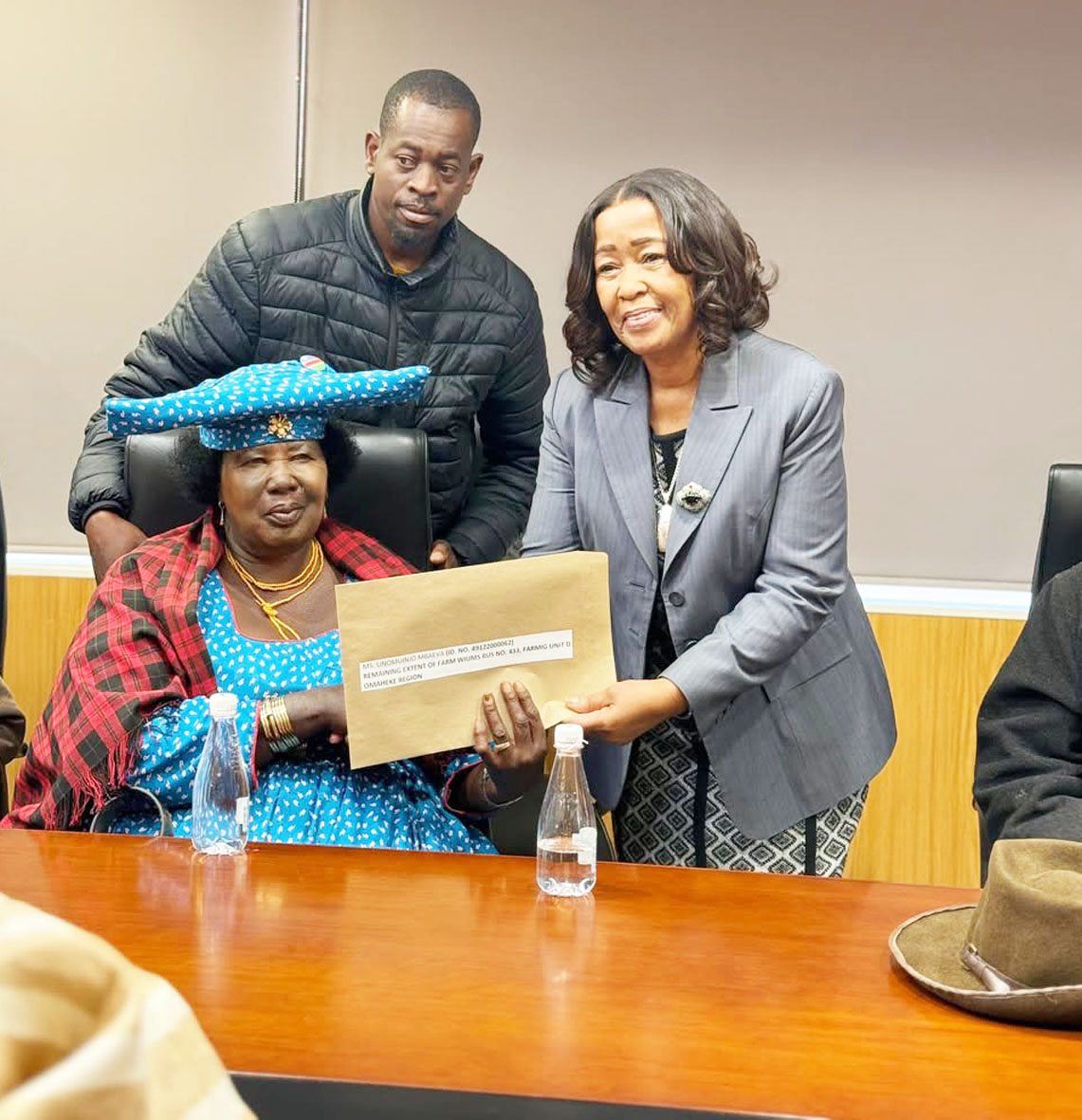 Minister of Agriculture, Fisheries, Water and Land Reform, Hon. Inge Zaamwani, has officially handed over allotment letters to nine generational farm workers from the Omaheke Region on Tuesday.